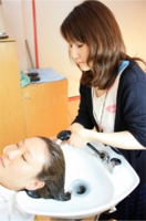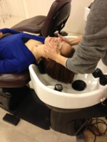 炭酸泉でシャンプーする事で余計な汚れやシリコーンなどを除去して施術しやすい環境を作ります。