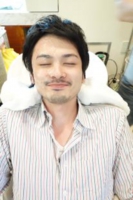 モデルさんに向かって左だけ炭酸ジェルを塗布。
