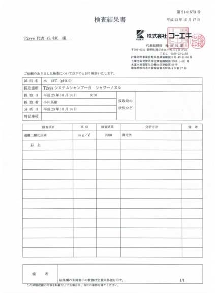 炭酸泉の性能は濃度によって評価されますがT2sysの濃度はほぼMAX(限界値)なので